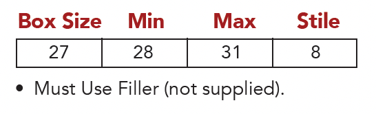 - Must Use Filler (Not Supplied)
