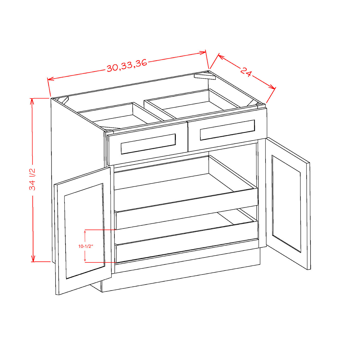 Torrance White Two Rollout Shelf Base Cabinet Kit - 33"W x 34-1/2"H x 24"D -2D-2D-2RSA